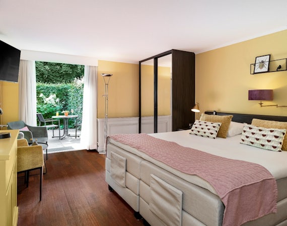 Je zult niet de eerste zijn die zich verslaapt bij De Wilmersberg. De bedden op de Royale kamers zijn heerlijk, de kamers zijn donker en buiten is het stil. Afgezien van die ene uil in het bos misschien, die je in de verte 'oehoe' hoort roepen. Dit is dé plek om echt tot rust te komen, hier kun je je welverdiend nog eens lekker omdraaien als je wakker wordt.